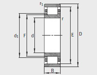 询价 型号 质量m ≈kg 尺寸mm 安装尺寸mm 基本额定载荷N 疲劳极限载荷Cur/ N 极限转速 nG /min–1 参考转速nB/min–1
