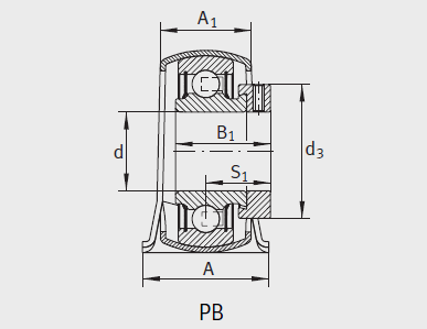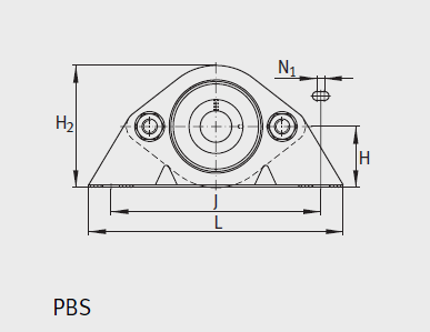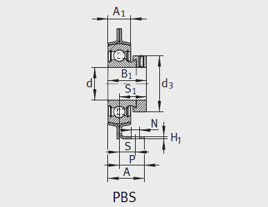 单元 轴承座1) 橡胶内衬 外球面球轴承 d H A A1 H1 H2 N N1 B B1 J S1 P S d3