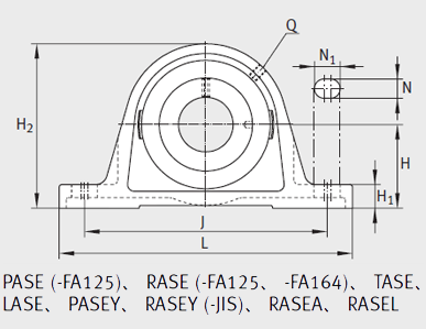 单元 轴承座 外球面球轴承 d H J L A A1 H1 H2 N N1 B B1 S1 Q d3