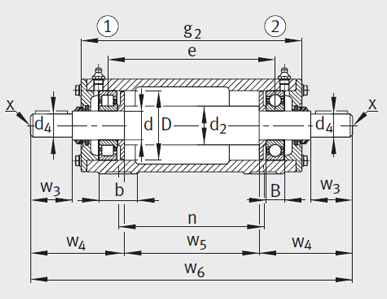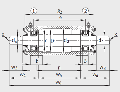 轴承单元 轴承① 轴承② 轴承座 轴承座 ≈kg 单元 ≈kg e d D B a g2 h1 d2 d4 w2 w3 w4 w5 w6 w7 b n m c h s