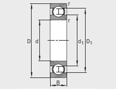 询价 型号 质量m ≈kg 尺寸mm 安装尺寸mm 基本额定载荷N 疲劳极限载荷Cur/ N 极限转速 nG /min–1 参考转速nB/min–1