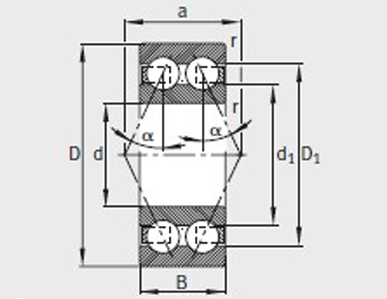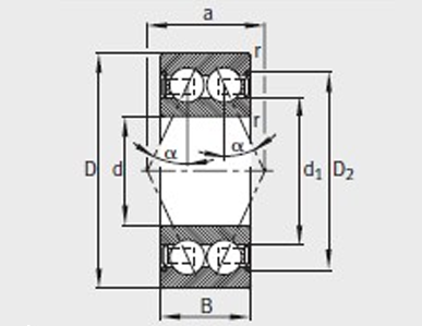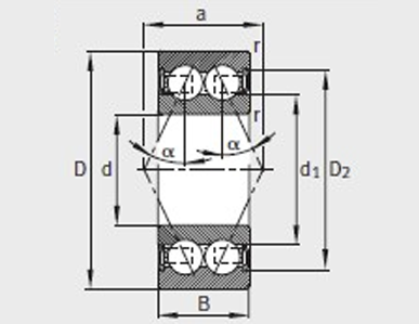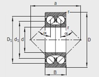 询价 型号 质量m ≈kg 尺寸mm 安装尺寸mm 基本额定载荷N 疲劳极限载荷Cur/ N 极限转速 nG /min–1 参考转速nB/min–1